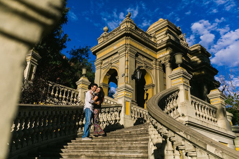 Para esta ocasión, les propuse hacer una Sesión Preboda Cerro Santa Lucía, uno de los lugares más icónicos y hermosos de Santiago. Para los fotógrafos, una preboda es una sesión de pareja que busca capturar la conexión entre ellos de forma espontánea y auténtica. Pero esta no fue solo una sesión para ellos; también lo fue para mí, porque fotografiar su historia y su amor es algo que atesoraré siempre.